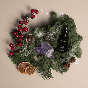 This opulent duo is the route to a natural glow, A beautiful, heart-shaped Amethyst Gua Sha symbolises your bond. The perfect pairing for holistic skincare, it combines this luxurious tool with our award-winning Face Oil. This thoughtful Christmas gesture encourages a daily ritual that promotes lymphatic drainage and leaves skin visibly lifted and glowing with renewed vitality for the festive season.