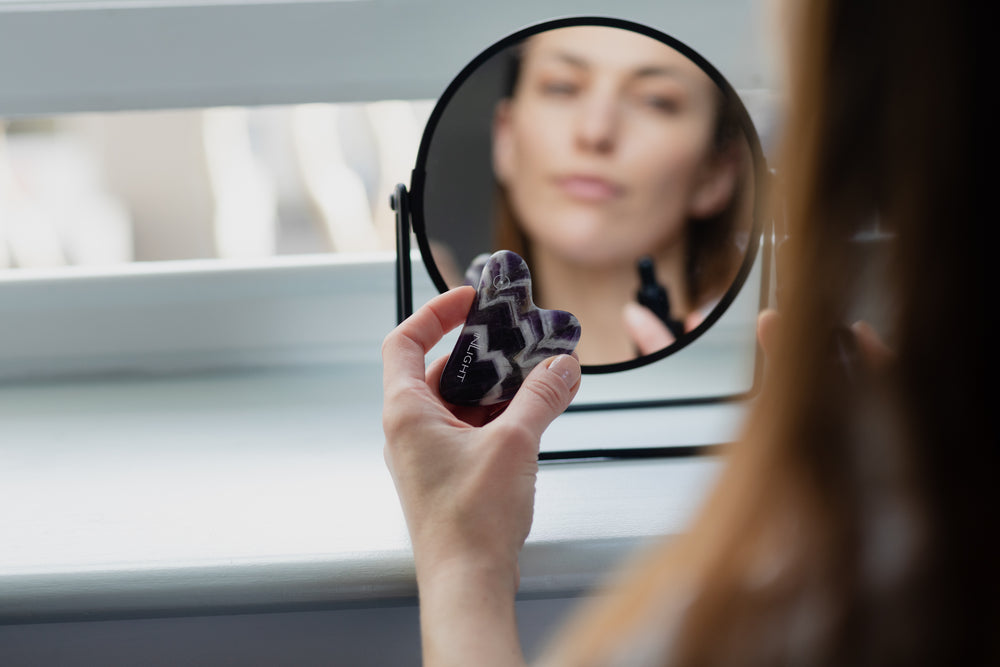 Your skin repairs and rejuvenates overnight, so ideally, when menopause comes knocking, you want to be prepared with a product that aids healing, decreases inflammation and restores hydration, all in one go. To use it, simply and regularly apply a thin layer of the balm to your skin before bed, massaging it into the face and décolleté with small, circular movements. Feeling like a bit of a pamper? You can use our Amethyst Gua Sha to smooth it on and get your daily dose of positive vibrations.