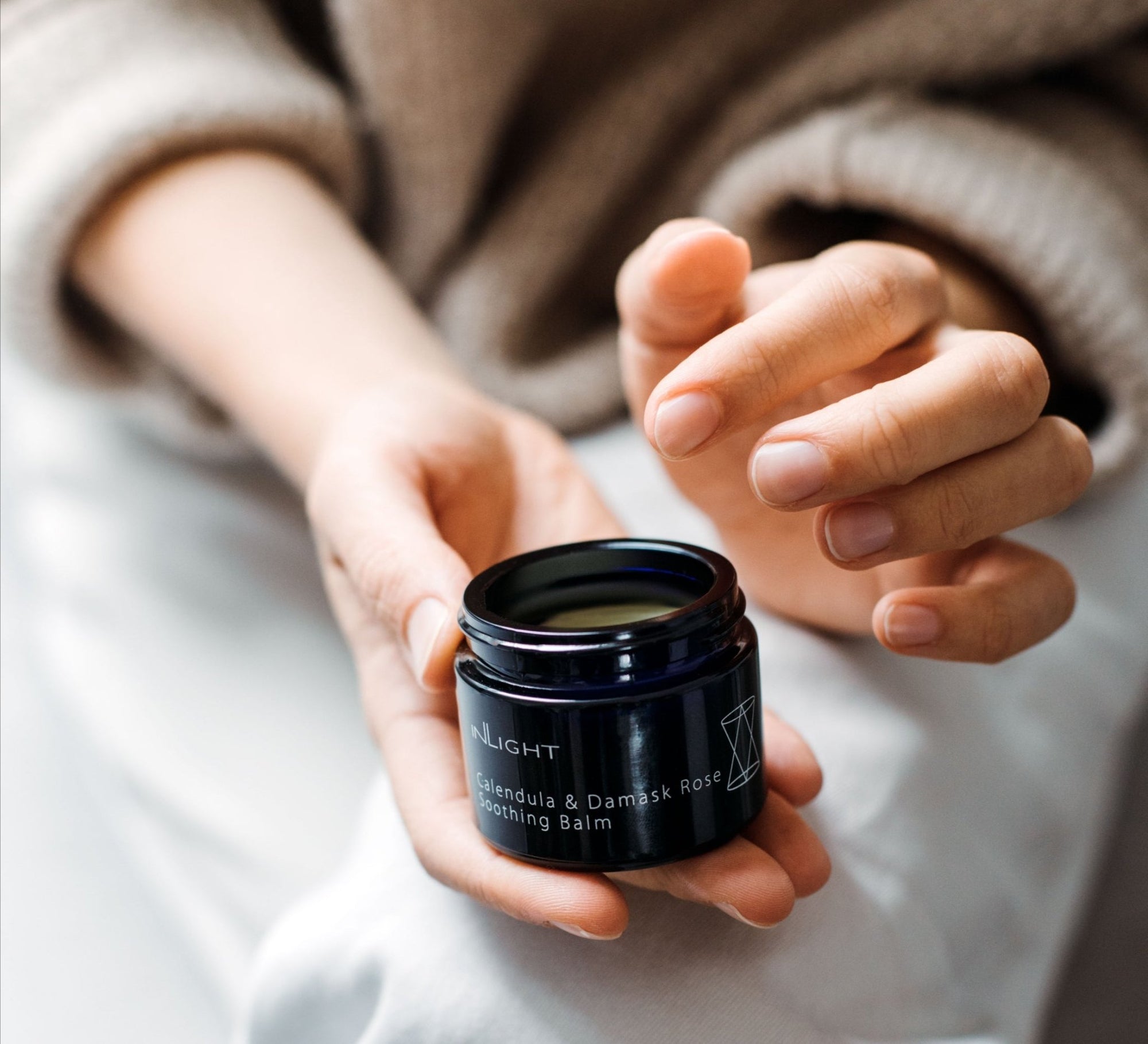 IMAGE Before & After applying Calendula & Damask Rose Balm