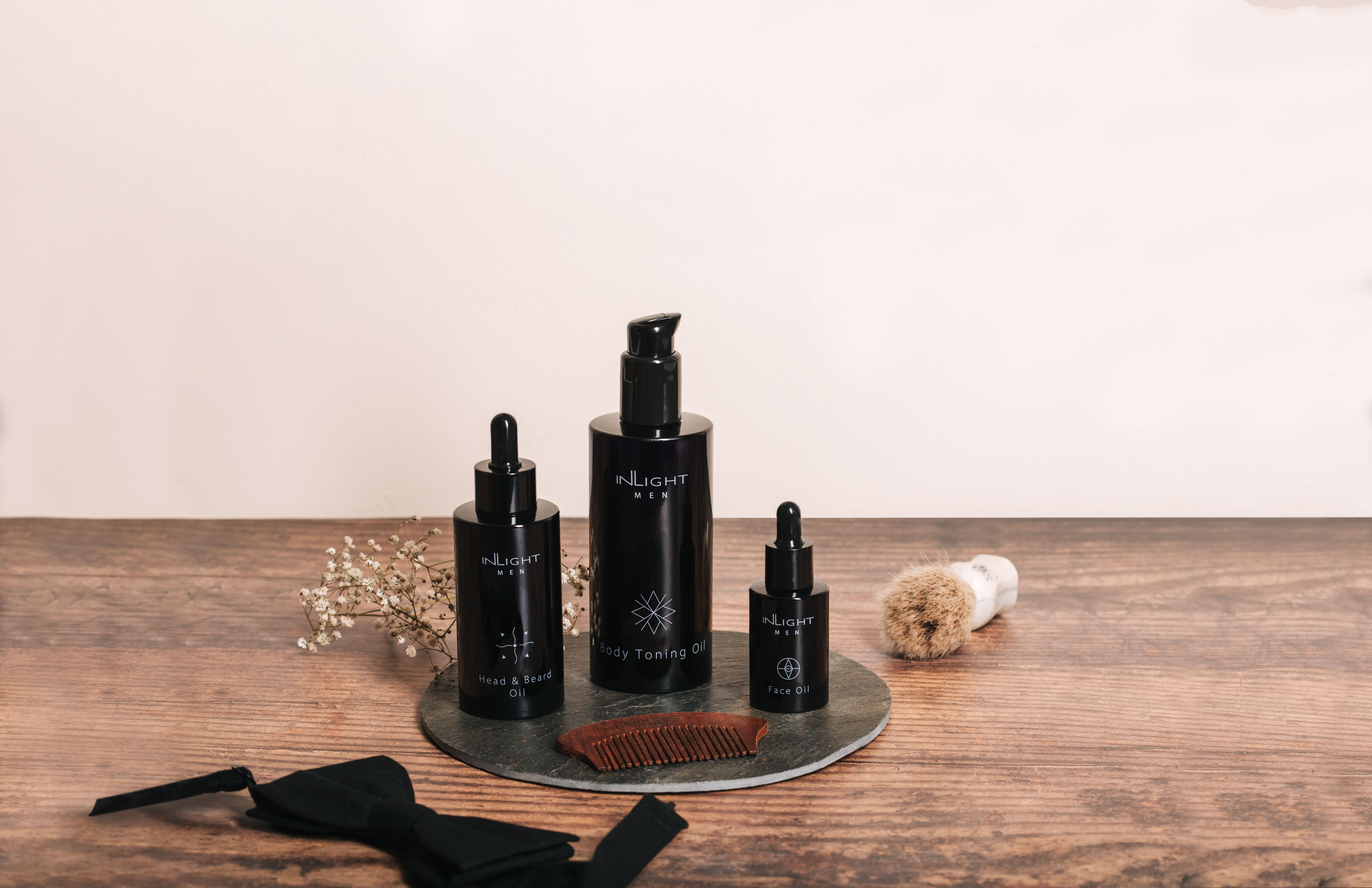 Apply a few drops of Inlight head and beard oil to your fingertips.
