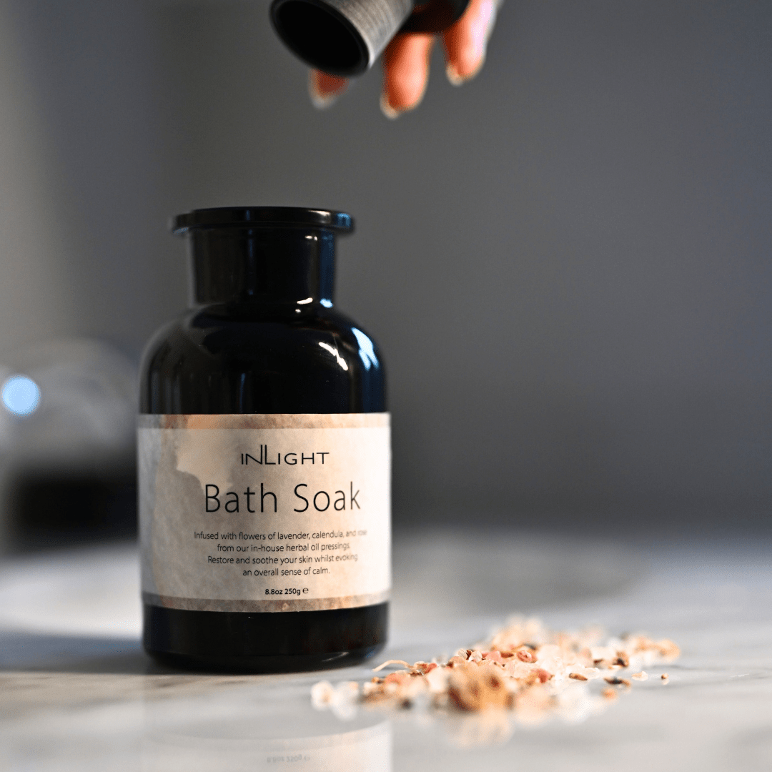 Open up your jar of Inlight Bath Step 1: Soak and take three deep breaths of the natural aromas. Step 2: Sprinkle a handful as the bath is running, allowing the salt to dissolve. Sit back and enjoy some ‘me-time’ to reset.