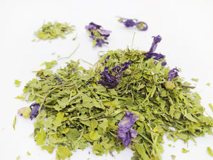 This bright blue flower has soothing, astringent and cooling properties. The tannins, flavonoids and vitamin C found in the flower and leaves, are known for soothing skin irritation, sores, rashes and acne.