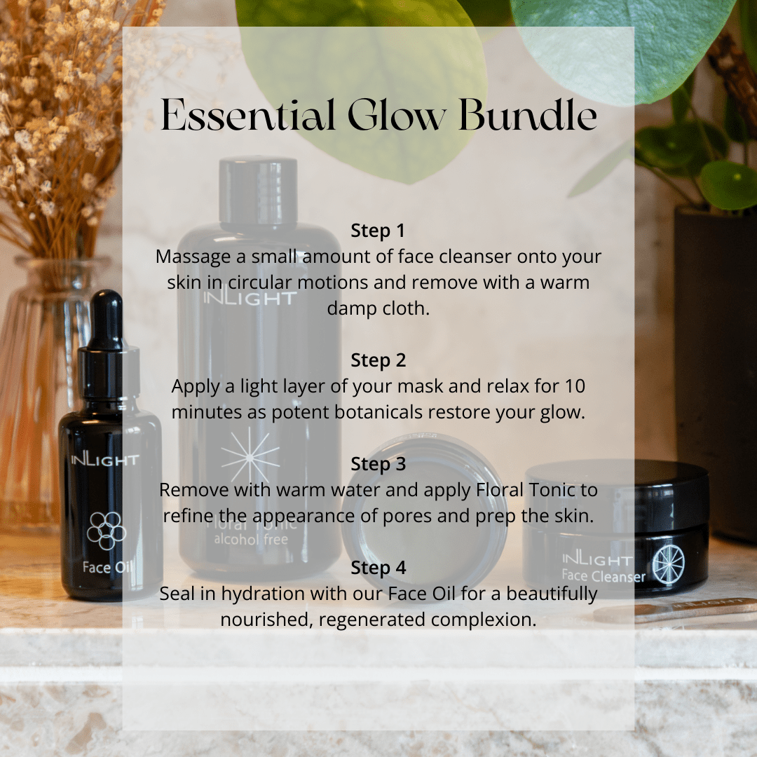 Start every day with key three steps for clean, clear, and healthy skin, then simply add a weekly mask to detox and brighten. Create a fresh canvas with the purifying Face Cleanser. Follow with a brightening and refreshing Floral Tonic before locking in moisture and preparing for your day with our uplifting classic - Inlight Face Oil.