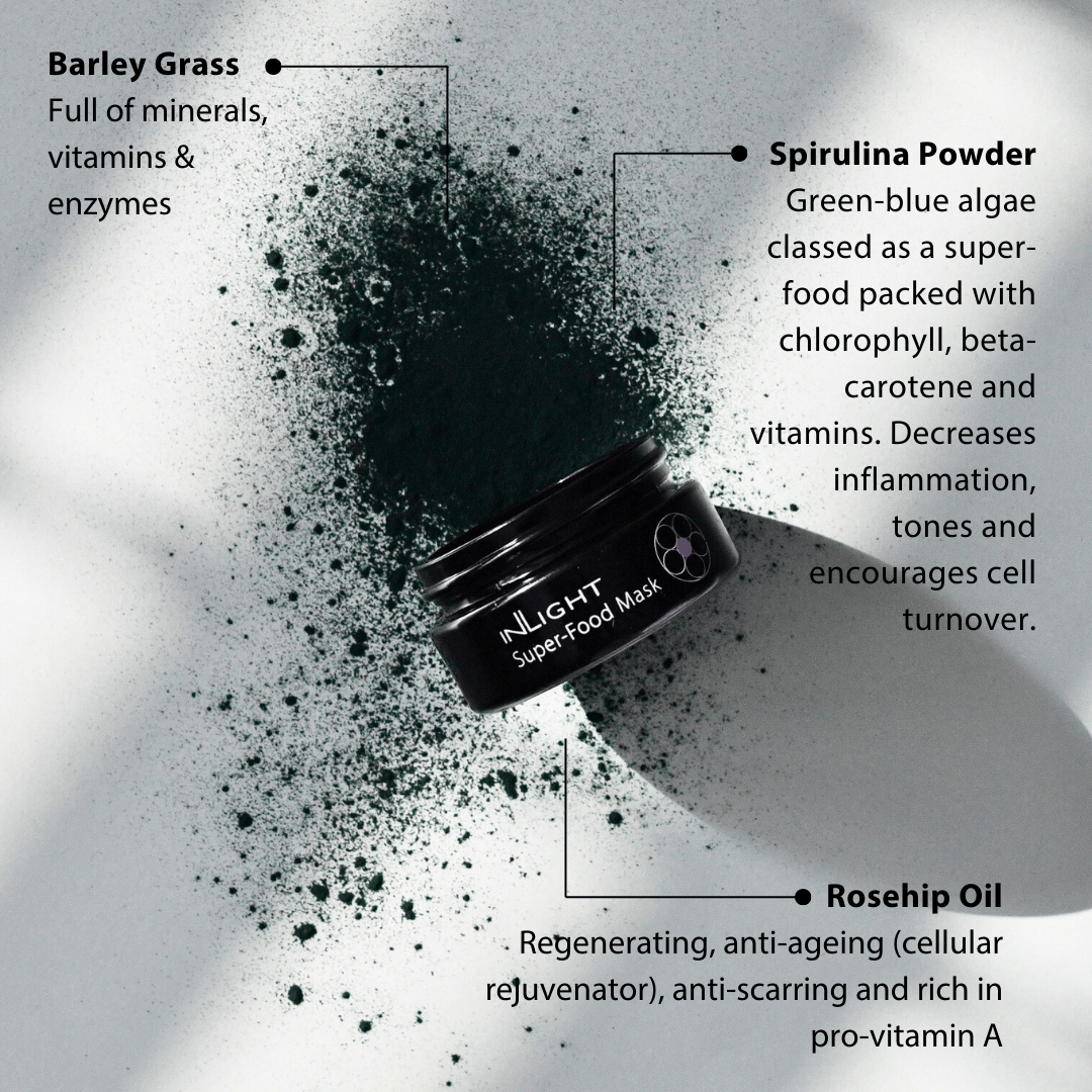 Super-Food Mask 25ml Uplifting and rejuvenating face mask bursting with Super-foods to detox and reset. Naturally rich in Vitamin E, full of earthy notes.